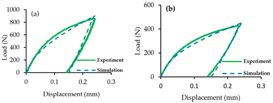 Comparison of experimental and simulation results of (a) bulk plate (0% of porosity) and (b) the plate with the porosity of 30%.
