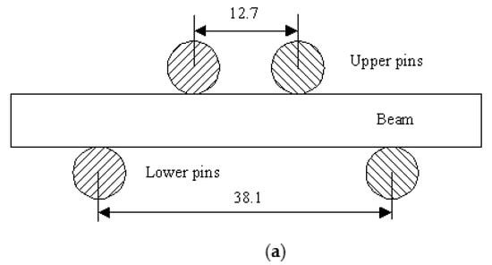 Schematic diagram of (a) layout of four-point bend test; (b) geometric shape and dimensions of bend beam (unit: mm).