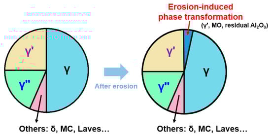 Schematic diagram of the IN718 phase transformation between pre and post erosion.