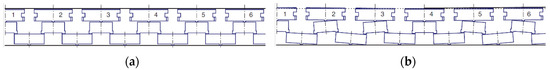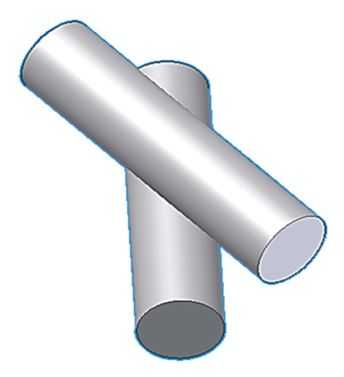 The geometry of the samples for experimental testing was built upon the research carried out in a previous stage (not presented in this paper), in which several variants of the lever geometry were gradually designed to create a functional model of the newly developed bearing. The kinematic functionality of all variants was verified by a simple test to measure the maximum misalignment of the levers. Based on the test results, which confirmed that the stiffness and overall kinematics of the rocker arm were found to be the best, the following lever shapes (profiles) and their contact were considered for subsequent tribological tests (Figure 5):