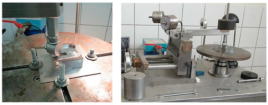 Figure 13. The samples clamping in the holder (left) and the complex view on tribometer (right).