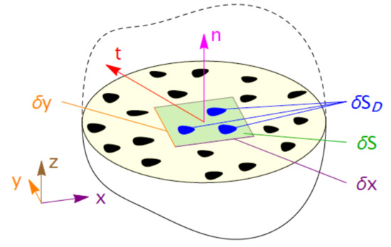 The Continuum Damage Mechanics framework from Lemaitre [6] is a concept that can describe damage in various bulk material models. Damage () reduces the effective surface area for load transmission. Stress is distributed on a smaller portion of the material; the elastic and the plastic response are affected. For Membrane Mode Enhanced Cohesive Zone Elements the framework is applied at an interface. Instead of tensorial stresses, traction vectors transmit the load through the material. Figure 2 shows the joining zone with partial defects () that reduce the surface area for load transmission (). The effective traction due to a reduction of the load transmitting surface area is