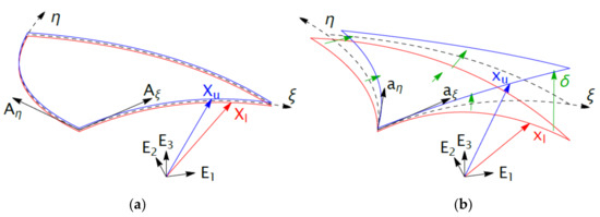 and accordingly, in the current configuration. With the procedure in [5] the 2D tangential vectors and finally the 2D deformation gradient can be computed that describes the membrane deformation.