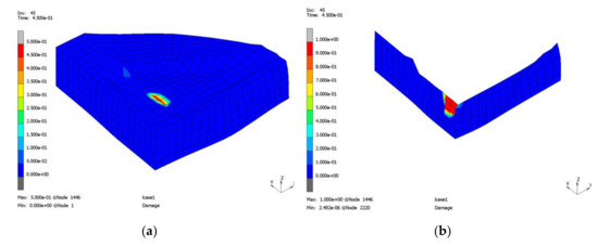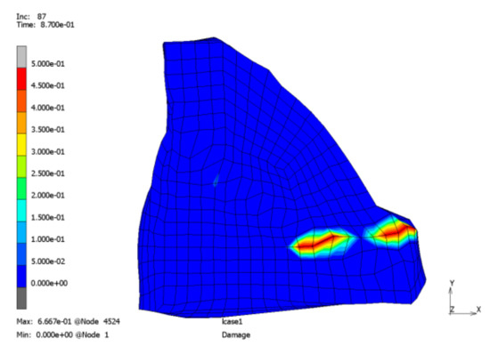 In [5], several simulations are carried out to fit parameters for the material model. The maximum allowable tensile and shear traction are determined to be and . The Lemaitre damage parameters are and .