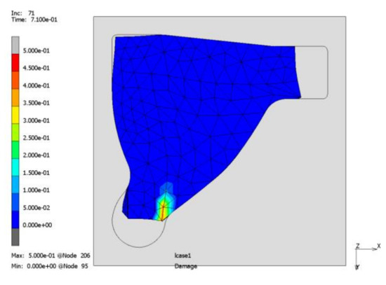 Forming process using a simplified geometry (backside of Figure 11b): joining zone damage.