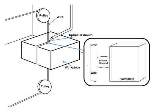 A fundamental study of WEDM conducted by Kunieda et al. [2] that included both mechanical and electrical principles provided a basic insight into the WEDM process. Moreover, in recent years, a large amount of research has focused on improving the WEDM process combining this process with other advanced technologies. For instance, Radhakrishnane et al. [3] and Chu et al. [4] studied the removal rate and advantage of vibration-assisted WEDM. Moreover, in the works of Sanchez et al. [5] and Thankachan et al. [6], machine learning (including both unsupervised learning deep learning) was employed to detect defects in the WEDM process, including surface roughness and material removal rate. Thermal modeling is a useful method for restoring the internal heat transfer process through the simulation of WEDM discharge. In the works of both Izquierdo et al. [7] and Zhang et al. [8], the Finite Element Method (FEM) was applied to finish the construction of the thermal model. In these works, heat partition is critical and included as a fixed value, as in the study reported by Kunieda et al. [2], while plasma channel radius is always regarded as a variable value. Some clues can be initially seen in the work of Spur and Schönbeck [9] that they presented that the plasma channel radius changes depends on the time.