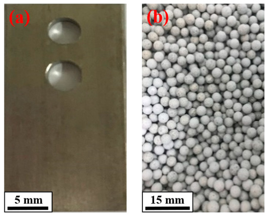 The size of 304 stainless steel specimens used in this study was 30 mm × 15 mm × 3 mm, as shown in Figure 1a. The diameter of the particles was about 3 mm, as shown in Figure 1b. The chemical elements of 304 stainless steel is shown in Table 1, and the basic properties of 304 stainless steel is shown in Table 2 [14]. In order to improve the reliability of the experiment, ultrasonic cleaning of 304 stainless steel specimens was performed with anhydrous ethanol before erosion wear experiment. Brown corundum particles were used as abrasives in this experiment, and its physical properties is shown in Table 3.