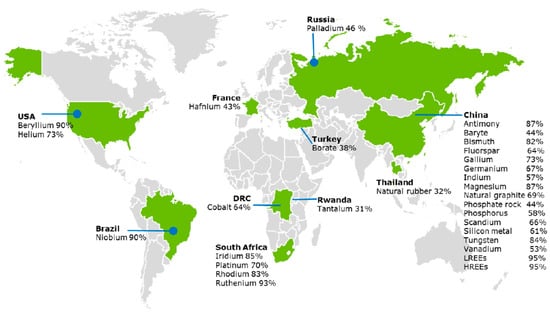 Countries accounting for largest share of the global supply of critical raw materials [7].