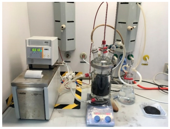 The first stage of work aimed for the optimization of the leaching process. In this study, the main parameters of this method were investigated (using the experiment setup shown in Figure 4). At a given concentration of the acid (1–2 mol/L), the optimal parameter combination comprises 80 °C, 100 g/L solids, magnetic stirrer speed (500 min−1) and 4 h of leaching time [19,20]. The acid concentration was found within this low range to result in higher selectivity of the leaching. These specific parameters prevented copper from being dissolved and, as a result, this contaminant can be separated in the first step [21].