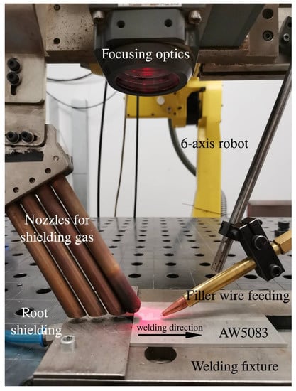 - Bunaziv, I.; Akselsen, O.M.; Salminen, A.; Unt, A. Fiber laser-MIG hybrid welding of 5 mm 5083 aluminum alloy. J. Mater. Process. Technol. 2016, 233, 107–114. [Google Scholar] [CrossRef]