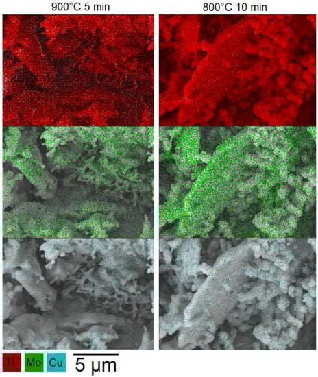 | Sample | Phase | Ti (at.%) | Mo (at.%) | Cu (at.%) |