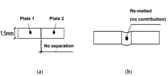 Hence, with the aim of ensuring stainless steel properties, 1.5 mm thickness steel plates will be used for calibration tests to determine the optimum thermal input. These plates are selected as representative of cold-formed corrugated steel to which the standardized range of tests is applicable, including tests on automatic welding and welding beams with no filler metal, considered later on. The aim here is to minimize the effects of any working variables that do not depend on the material itself avoiding introducing an additional variable relating to material compatibility. Tungsten Inert Gas (TIG) welding was chosen rather than welding, which is also widely used and might be more economical, because TIG welding without filler performs better in terms of corrosion resistance, presenting uniform welding beads and a narrower HAZ [14,15].