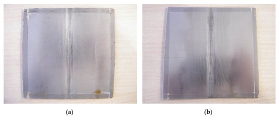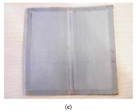 Then, once each coupon was welded at different welding speeds, the weld seam and adjacent area was pickled and passivated, to restore the corrosion resistance properties of the steel after welding and grinding. A pickling and passivation paste was used for this purpose. Figure 3 shows the coupons following this treatment process. Finally, following the application of these restorative treatments, the saline spray tests were performed to ensure post-welding corrosion resistance.