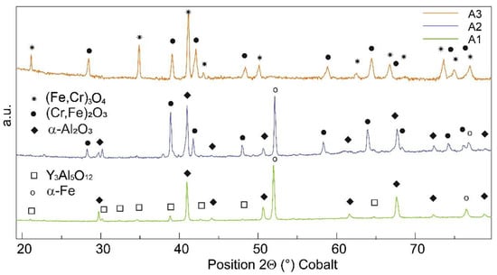 | A3 (0.3 wt.% Al) | 2.11 | 1.45 × 10−1 | (Cr,Fe)2O3, (Cr,Fe)3O4 |