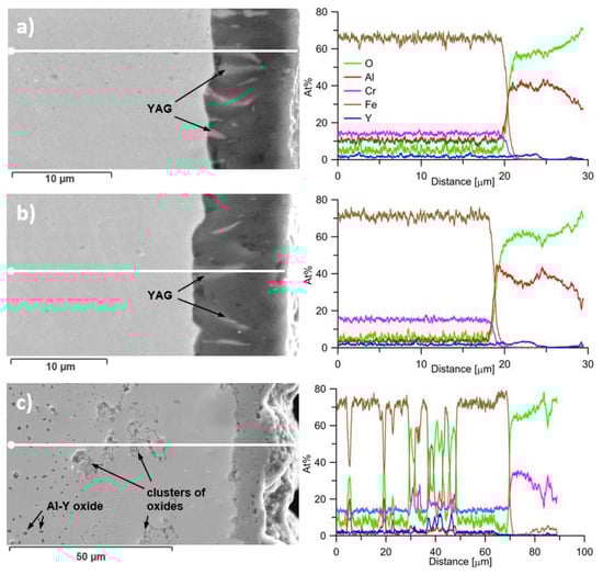 - As the Fe-15Cr-xAl-4Y2O3 new-generation ODS alloys contains a high amount of Y2O3, the corundum-based oxide layer of the grades with the high Al content x = 2.0 wt.% and 5.5 wt.% reacts with the Y2O3 and YAG dendrites grow in the layer.