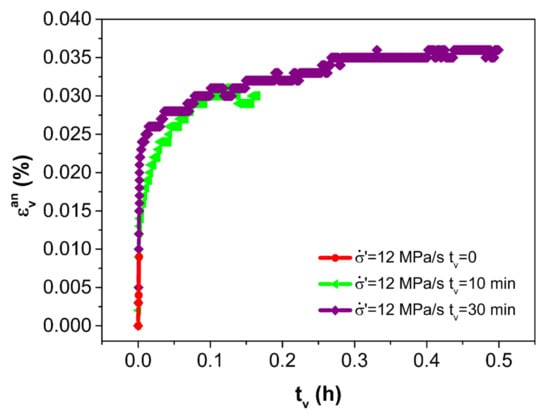 Evolutions of anelastic recovery strain near valley stress with time of the second cycle for different durations under valley stress.