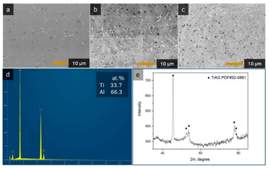 - Školáková, A.; Salvetr, P.; Novák, P.; Vojtěch, D. Formation of Ti-Al Phases during SHS Process. Acta Phys. Pol. A 2018, 134, 743–747. [Google Scholar] [CrossRef]