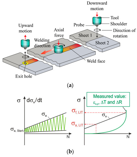 (a) Operating principle of friction-stir welding (FSW); (b) characteristics of the continuous load increase test (LIT).