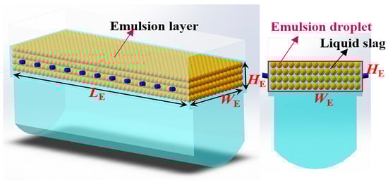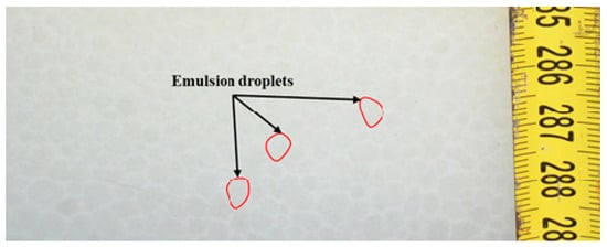 The volume fraction of emulsion droplets in the emulsion layer, φ, is also determined by operating conditions. Figure 7 shows the emulsion phenomenon in the water–oil system. Spherical and ellipsoidal emulsion droplets of different sizes are closely arranged in the emulsion layer. Therefore, the volume fraction φ is chosen to be one in the next calculation.