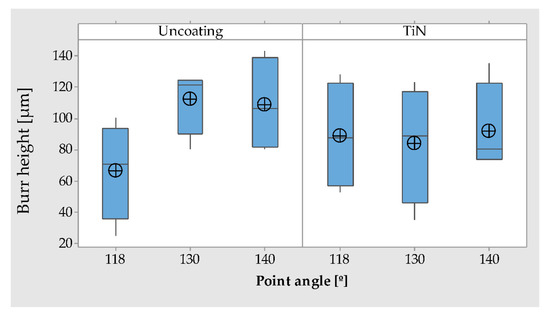 26]. Regarding the point angle of drills, in general, an increase in its value increases the height and the thickness of the burr [