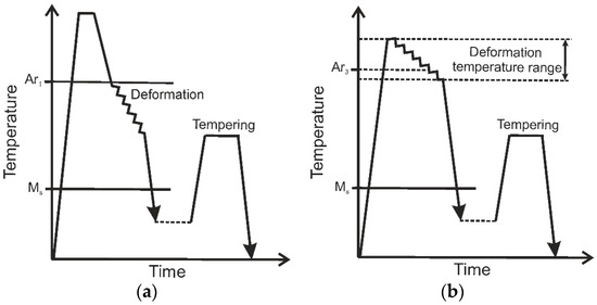 - Ohmori, M.; Kawamata, K. Strengthening of steels by modified ausforming. Bull. JSME 1978, 21, 359–366. [Google Scholar] [CrossRef]
