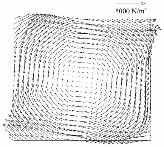 Usually, the particle slipping velocity is in the direction of gravity. But the particle slipping velocity in the electromagnetic field is three-dimensional because the current density and the magnetic flux density are three-dimensional. The two terms to the right side of Equation (9) have clear physical meaning. The first term comes from the difference between the buoyancy and the gravity, the second term comes from Archimedes electromagnetic force.