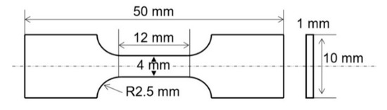 Schematic diagram showing the dimensions of tensile test sample used in this study.
