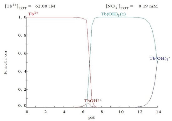 Terbium(III) speciation as a function of the pH values using the Medusa program [31].