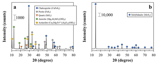 - Miki, H.; Matsuoka, H.; Hirajima, T.; Suyantara, G.P.W.; Sasaki, K. Electrolysis Oxidation of Chalcopyrite and Molybdenite for Selective Flotation. Mater. Trans. 2017, 58, 761–767. [Google Scholar] [CrossRef]