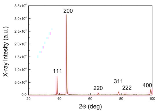 Figure 2 shows the XRD pattern of the original material. The relative intensities of the strongest diffraction lines are reported in Table 3 and compared with those of International Centre for Diffraction Data (ICCD) database (4-787 file) [38] corresponding to Al with random oriented grains. From the comparison it is evident that the examined material exhibits a strong cubic texture, namely the grains are mainly oriented along the (100) direction.