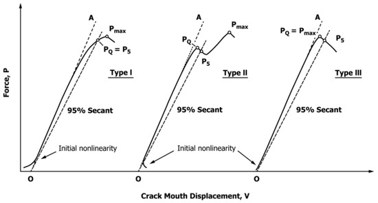 Principal types of force-displacement (CMOD) records (ASTM E399-12e3 2012).