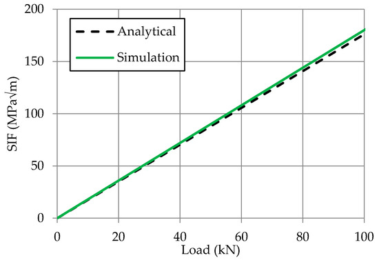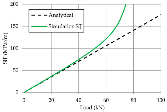 Comparison of KJ with the analytically calculated stress intensity factor.