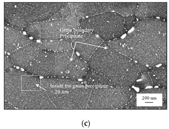 - Larger particles at the grain and subgrain boundaries (size ranging = 100–500 nm);