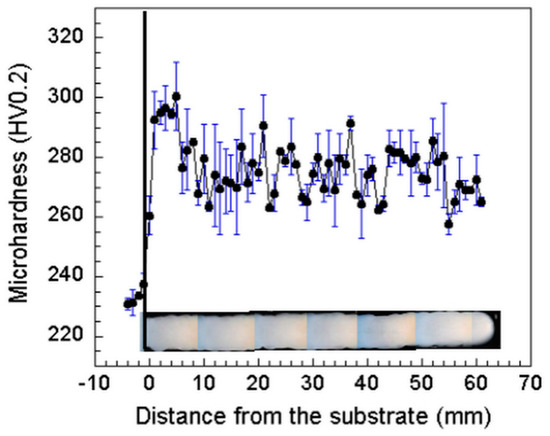 Figure 9. Microhardness along the longitudinal direction for the cross section.
