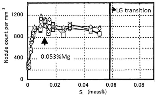 - Nakae, H.; Igarashi, Y. Influence of Sulfur on Heterogeneous Nucleus of Spheroidal Graphite. Mater. Trans. 2002, 43, 2826–2831. [Google Scholar] [CrossRef]