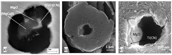 Experimental work by Igarashi and Okada [92] also supported a two-stage sequential theory, but in a different sequence. Their SEM-EDS analysis produced a (MgCa)S spherical nucleus with an MgO core.