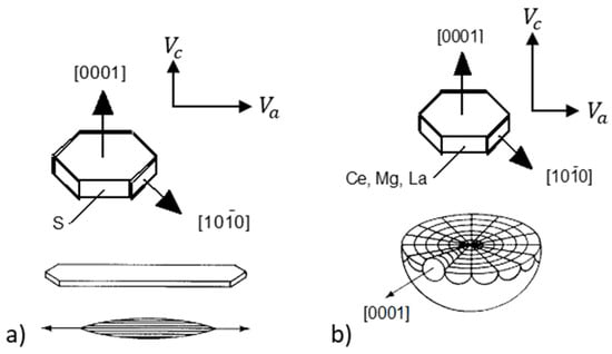 - Hellawell, A.; Herbert, P.M. The development of preferred orientation during the freezing of metals and alloys. Proc. R. Soc. 1962, A269, 560. [Google Scholar]