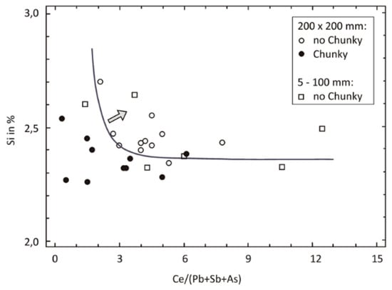 - Petzschmann, U. Vermeidung von Chunky-Graphit in dickwandigen Gussstücken aus Gusseisen mit Kugelgraphit, Final report AiF-Vorhaben 16801 N, Institut für Gießereitechnik, Düsseldorf, 2013. Available online: https://www.fvguss.de/fileadmin/content_fvguss/Dokumente/16801.pdf (accessed on 4 February 2020).