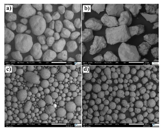 Sand type A fine is eolic silica sand with a rounded grain shape from the same source as the basic material [10]. Sand B is silica sand with angular grains, and thus is not commonly used in aluminum casting technology from a locality in Czech Republic [11]. Sand C is special foundry sand produced by fusing and super-cooling bauxite in an electric arc furnace. Sand C is characterized with spherical shaped grains [12,13]. Sand D is artificial sand made of mullite crystals by firing spherical granules. Both synthetic sands are produced in Asia [13,14]. Table 1 presents an overview, and the pictures in Figure 1 show the grain shapes and surfaces of the chosen sands for examination.