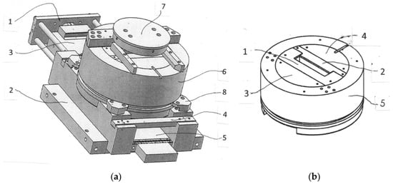 Another prospective area for the industrial applications of ECAE was the cold and warm processing of functional alloys for improving their special characteristic and mechanical properties. The critical conditions in this case were high extrusion stresses and material galling to the tool during multi-pass processing. This required a sophisticated combination of movable walls in both channels as shown in Figure 5b. Two sliders (1) in the inlet channel eliminated friction alongside the walls and provided punch strength and stability. A bottom slider (2) in the outlet channel substituted large plastic friction between material and tool with low friction between tool parts and eliminated sticking and galling. This design allowed processing of magnets, special elastic alloys, superconductors, and other materials with an ultimate tensile strength up to 1600 MPa. After completion of a working stroke, the bottom slider was moved to the limit left position by an additional cylinder, which fully released the billet ejected from the outlet channel by an additional punch stroke.