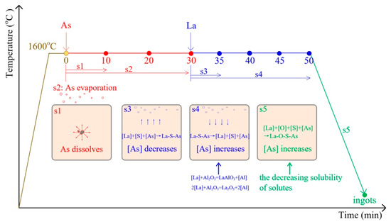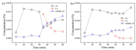 3.2. Changes in Concentrations of Lanthanum, Arsenic, and Acid-soluble Aluminum in Steel