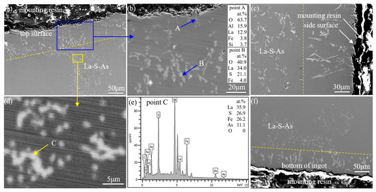 - Wang, H.; Jiang, S.; Yu, P.; Bai, B.; Sun, L.; Wang, Y. Distribution of arsenic inclusions in rare earth steel ingots. Metals 2020, 10, 146. [Google Scholar] [CrossRef]