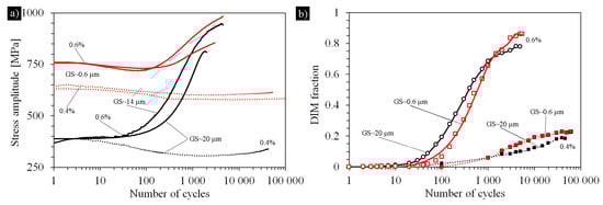 Here the alloying elements are in mass % and GS is in ASTM unit. The Md30 temperature is around 20–40 °C for 301LN, whereas lower for 304 (examples in Table 1). From Equation (1), it is also seen that during deformation Ni stabilizes austenite more than Mn does, which is contrary to that concerning thermodynamic austenite stability [115]. Refining the GS also increases the stability, as reported in numerous studies, e.g., [46,75,114]. In repeated reversion treatments, to be discussed shortly later, this means that in subsequent cold rolling stages, the DIM formation becomes reduced [21]. The relationship between austenite GS and its stability under tensile and fatigue loading will be discussed later in Section 5.