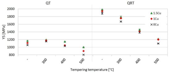 | QT | 0Cu | 400 | 1030 | ± | 2 | 1051 | ± | 6 | 1.6 | ± | 0.7 | 11.9 | ± | 1.0 | 56.3 | ± | 1.2 |