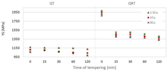 | QT | 0Cu | 120 | 1100 | ± | 2 | 1156 | ± | 8 | 2.2 | ± | 0.5 | 11.1 | ± | 2.0 | 52.2 | ± | 2.3 |