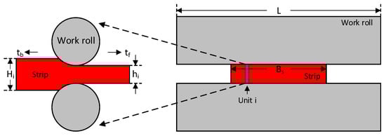 The contact pressure distribution between rolls is an important parameter for calculating the elastic deformation of rolls, and the rolling force distribution should be calculated before the calculation of contact pressure distribution. The diagram of the rolling process is shown in Figure 3, and the rolling force of unit ii is calculated, as follows: