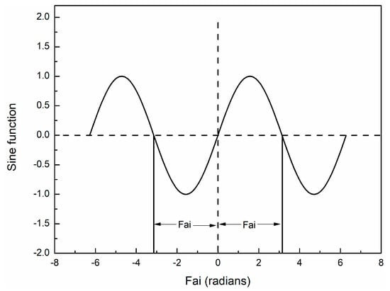 Fai is called the profile angle (in radians), which is the most critical parameter of the SmartCrown intermediate roll profile. Fai determines the span of the roll profile in the standard sine function (as shown in Figure 11). The sine has more than one period when Fai exceeds 3.14, which goes against the grinding of the roll profile and flatness control. Hence, Fai is set to 0.7, 1.3, 1.9, 2.5, and 3.1, according to the manual experience. A, B, and C are set to a constant value (A = 3.6, B = 0.004 and C = 80) when Fai is analyzed, and the calculation results are shown in Figure 12.