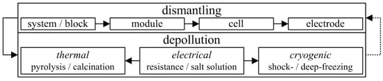 - Ay, P.; Markowski, J.; Pempel, H.; Müller, M. Entwicklung eines innovativen Verfahrens zur automatisierten Demontage und Aufbereitung von Lithium-Ionen-Batterien aus Fahrzeugen. Recycl. Rohst. 2012, 5, 443–456. [Google Scholar]