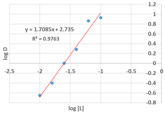 Slope analysis for the transport of Ta with L. Conditions: 2 mL 0.01 M TaCl5 in 1 M HCl, 11 M LiCl, contacted with 2 mL of 0.01 to 0.1 M L in toluene for 1 h at RT with magnetic stirring.