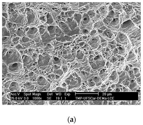 SEM–Secondary Electrons images of the fracture surfaces of the (a) 0Al, (b) 2.5Al, and (c) 5Al alloys.